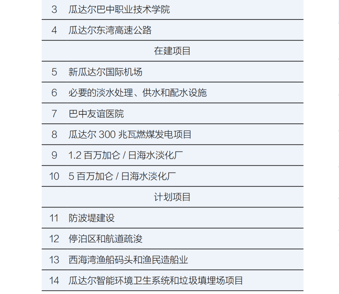 關于中巴經濟走廊區域內的社會經濟合作,巴基斯坦正在共同努力實施職業培訓計劃,支持醫療保健、農業和高等教育。應利用巴基斯坦的高等教育資源,開展與設計和研發(R&D)相關的活動,促進教育和研究機構之間的交流與合作。這將促進技術轉讓,加強交通和電力基礎設施的建設、運營和管理。當務之急是將醫療援助服務擴大到中巴經濟走廊覆蓋范圍內的更多地區,并根據實際需求升級現有醫療設施。此外,這種人與人之間的互聯互通將有助于中巴兩國在瓜達爾地區社會公益合作機制方面的經驗總結和模式創新。這將有助于推動整個中巴經濟走廊地區的社會福利合作,最終為中巴經濟走廊倡議贏得更多的公眾支持。這些合作努力還針對水資源的全面規劃,包括水資源管理、河流流域規劃,以及提高巴基斯坦協調水資源開發、節約和保護的能力。這包括與預防水災和旱災以及救災有關的舉措。該聯合工作組的項目清單如下: