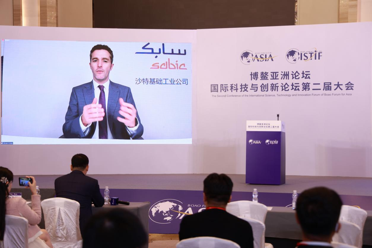 華南理工大學前沿軟物質學院副院長王林格主持“從分子設計到材料運用”分論壇。中國科學院院士、深圳大學特聘教授吳奇,中國科學院院士、東華大學材料學院院長朱美芳,阿斯頓大學基礎設施和可持續工程學院院長Paul D. Topham,華南理工大學材料科學與工程學院副院長張廣照,北京大學化學與分子工程學院教授張文彬和沙特基礎工業公司(SABIC)亞太區科技創新部總監顧黎燁共同探討了新時代下功能與智能新材料發展的新思路、新方向。
